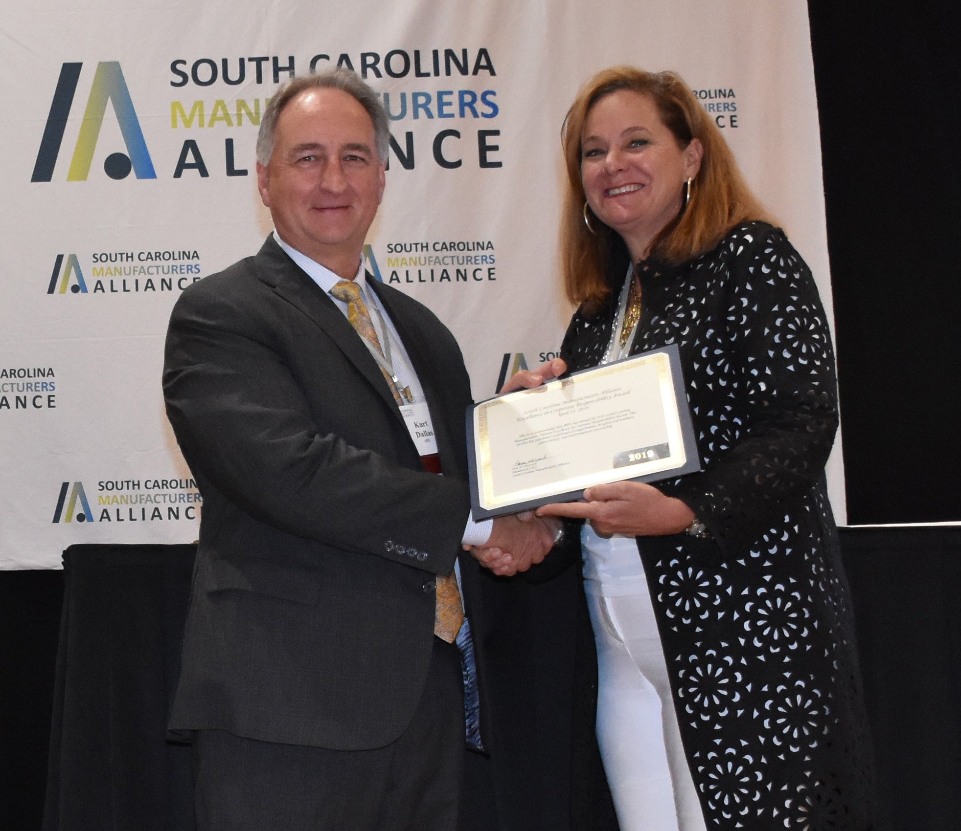 Spartanburg, SC – AFL, a manufacturer of fiber optic cable, accessories and equipment, was a recipient of the 2019 Excellence in Corporate Responsibility award presented by the South Carolina Manufacturers Alliance (SCMA). This award recognizes manufacturers who have excelled in community involvement and philanthropy, wellness and safety, and environmental stewardship.