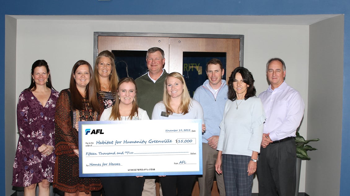 Spartanburg, SC – AFL is partnering with Habitat for Humanity of Greenville County, this time in support of its Homes for Heroes program. This program works to support deserving veteran families who are in need of affordable housing after returning from active duty. Through AFL’s Community Outreach Program, Habitat Greenville received $15K to support a local veteran family, the Rush’s, and their new home.
